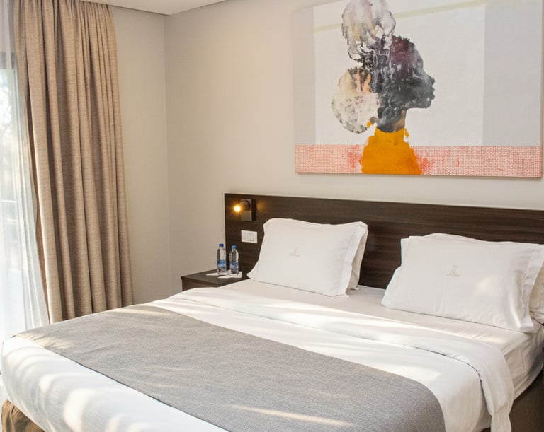 En pays Adioukrou, l’agbandji est la fête de la célébration. Pour vous permettre de vivre cette expérience unique, nous avons mis tout notre cœur à l’ouvrage. Du mobilier sophistiqué à la décoration de caractère, en passant par des produits d’accueil soigneusement sélectionnés, rien n’a été laissé au hasard. Dans cette chambre, vous trouverez un mini-frigo, une machine à café, deux TV connectées, et une terrasse offrant une vue à couper le souffle sur nos jardins. Faites péter le champagne et laissez-vous emporter par la fête. Tout au long de votre séjour, sur le cadran de votre montre, sera affiché : L’heure de la célébration.