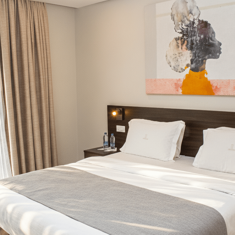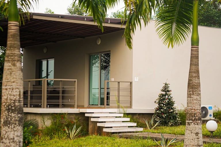 En pays Adioukrou, l’agbandji est la fête de la célébration. Pour vous permettre de vivre cette expérience unique, nous avons mis tout notre cœur à l’ouvrage. Du mobilier sophistiqué à la décoration de caractère, en passant par des produits d’accueil soigneusement sélectionnés, rien n’a été laissé au hasard. Dans cette chambre, vous trouverez un mini-frigo, une machine à café, deux TV connectées, et une terrasse offrant une vue à couper le souffle sur nos jardins. Faites péter le champagne et laissez-vous emporter par la fête. Tout au long de votre séjour, sur le cadran de votre montre, sera affiché : L’heure de la célébration.
